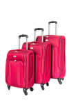 Set of 3 contemporary and trendy suitcases. A modern design. Adjustable telescopic handle. 4 wheels. Dimensions Large: 45x28x64cm / Medium: 38x24x55cm / Small: 32x20x45cm.