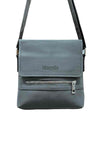 Adjustable shoulder or cross-body strap - Zipped closure under flap with a branded square metal pin buckle - Inside pockets - Zipped back pocket - Storage cover Size = Width x Length = 21 x 21 cm
