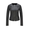 Ladies Real Leather Jacket Slim Fit Collarless Short Coat Black Jacket
