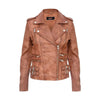 Ladies Retro 100% Nappa Real Leather Biker Jacket Tan Soft Multi Zip Short Coat