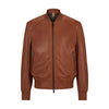 Men's Brown Leather Bomber Jacket Classic Zip Up Style Ribbed Collar Cuffs