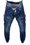 Mens Combat blue Jeans Cargo Denim Faded Trouser Casual Work Pants Cargo Joggers