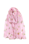 Shiny golden printed scarf with leaf pattern