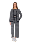Women's Lounge Set 3 Pieces Striped Bottom Top Cardigan Set Comfortable Outfit
