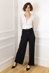 Women's Pleated Trousers In High Elasticated Waist & Wide Pleated Details Black